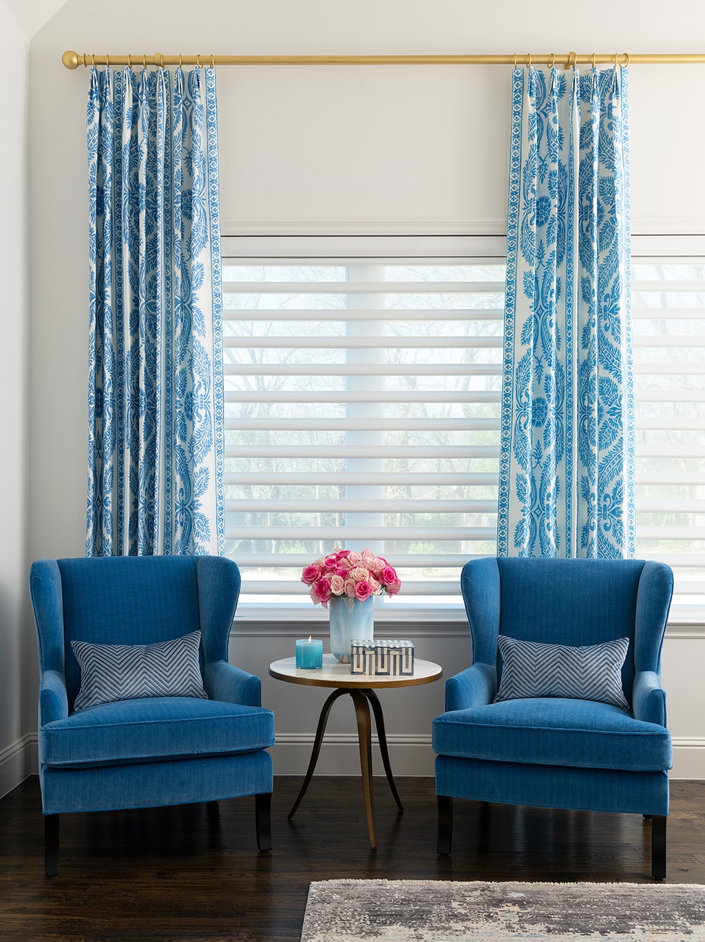 Your aesthetic preferences will also shape the best choice. For modern or contemporary interiors, sleek options like roller shades, banded shades, Silhouettes®, or Luminette® treatments offer clean lines and understated elegance. Silhouettes work beautifully in transitional spaces as well, bridging traditional and modern elements with ease.